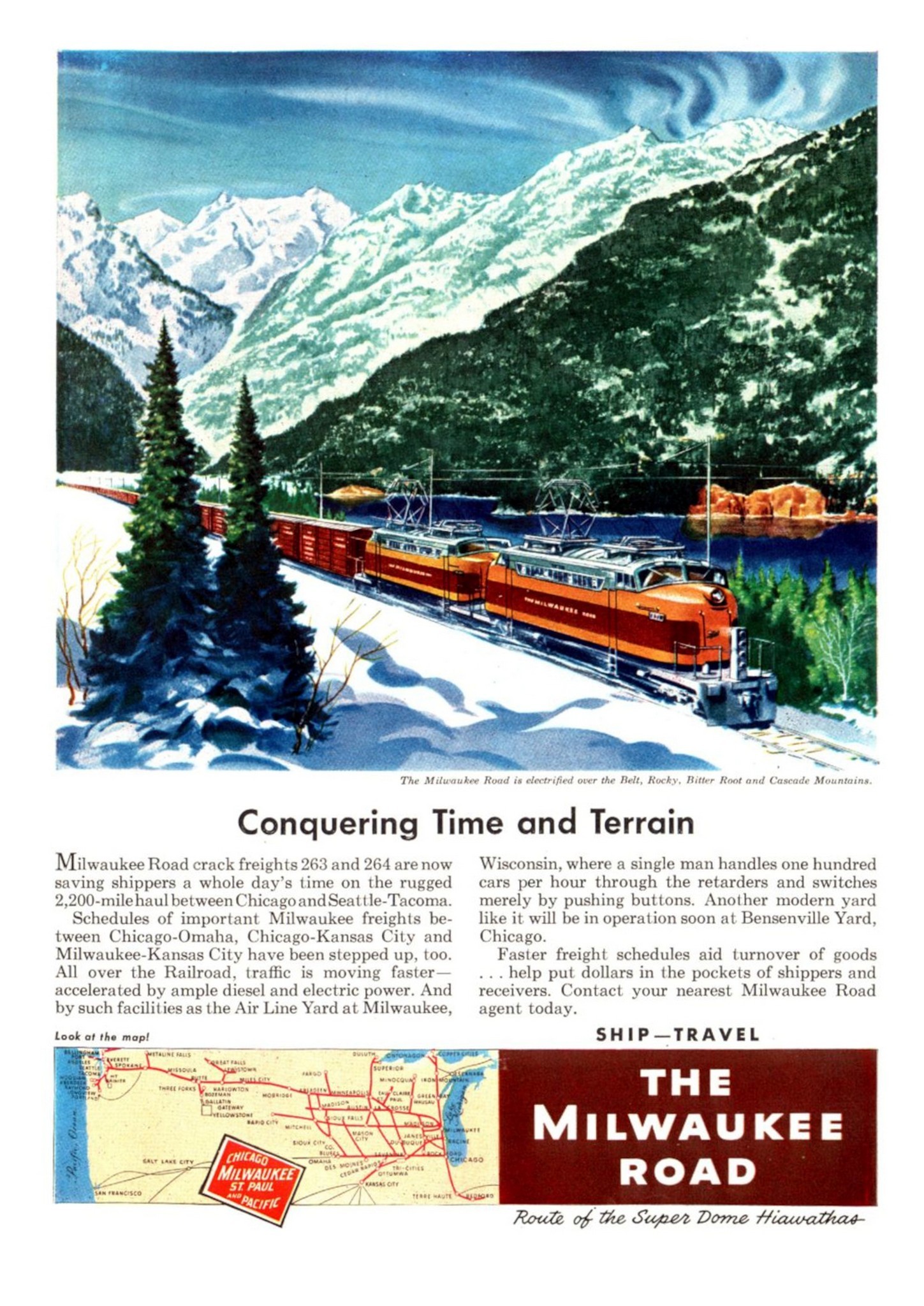 1953 Conquering Time and Terrain. Ship – Travel – The Milwaukee Road