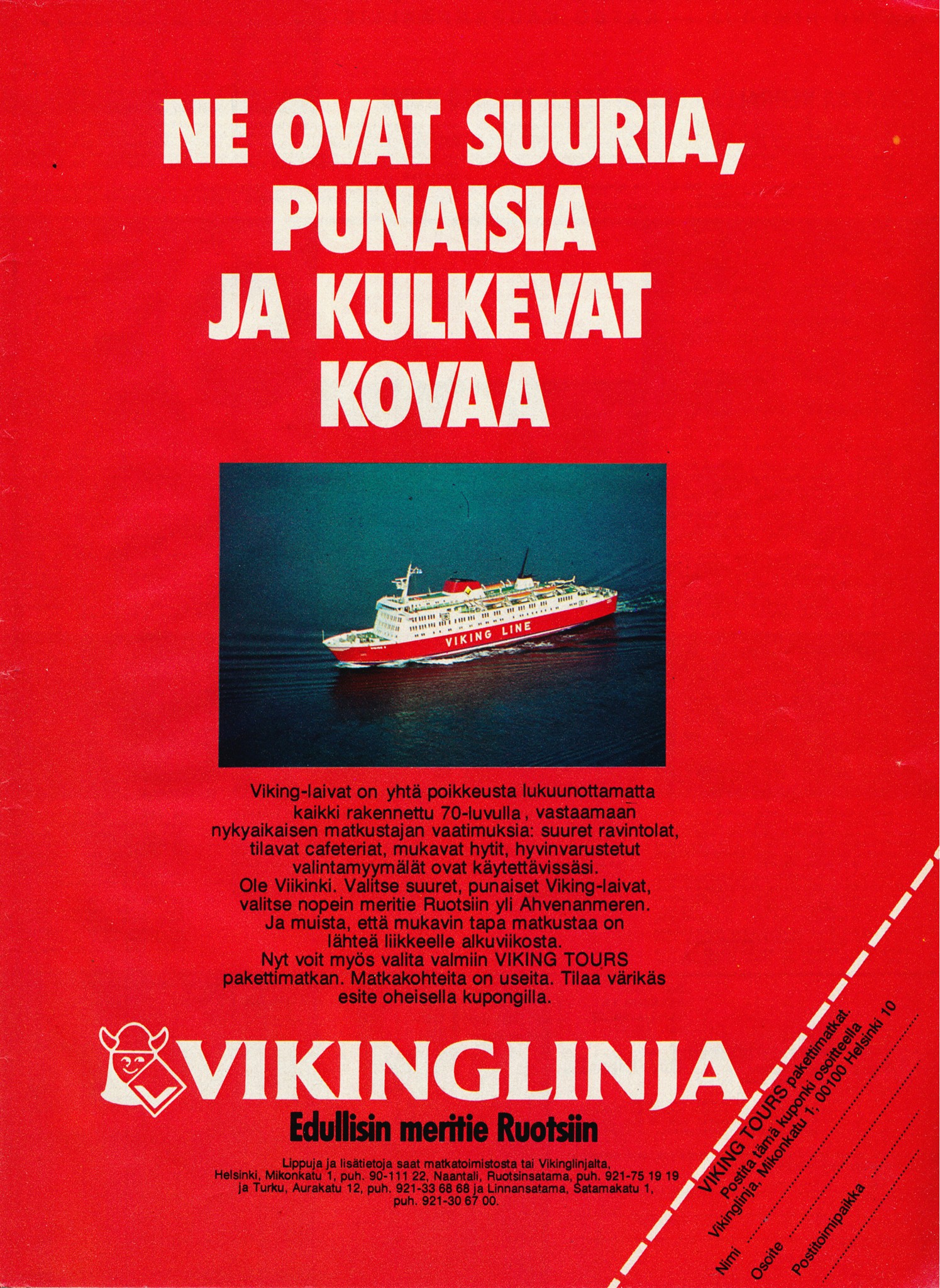 1973 Ne Ovat Suuria, Punaisia Ja Kulkevat Kovaa. Vikinglinja. Edullisin meritie Ruotsiin
