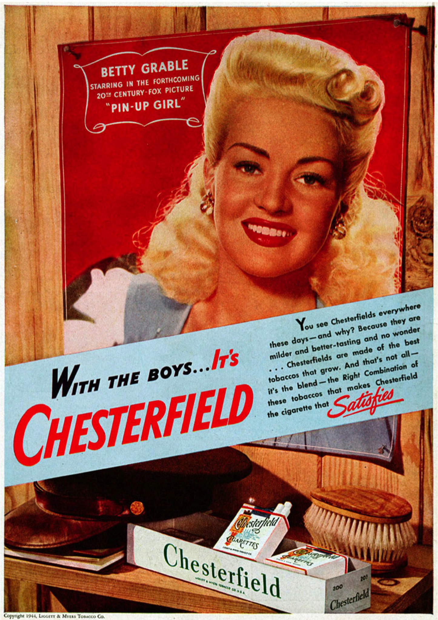 1944 Betty Crable. With The Boys ... It's Chesterfield