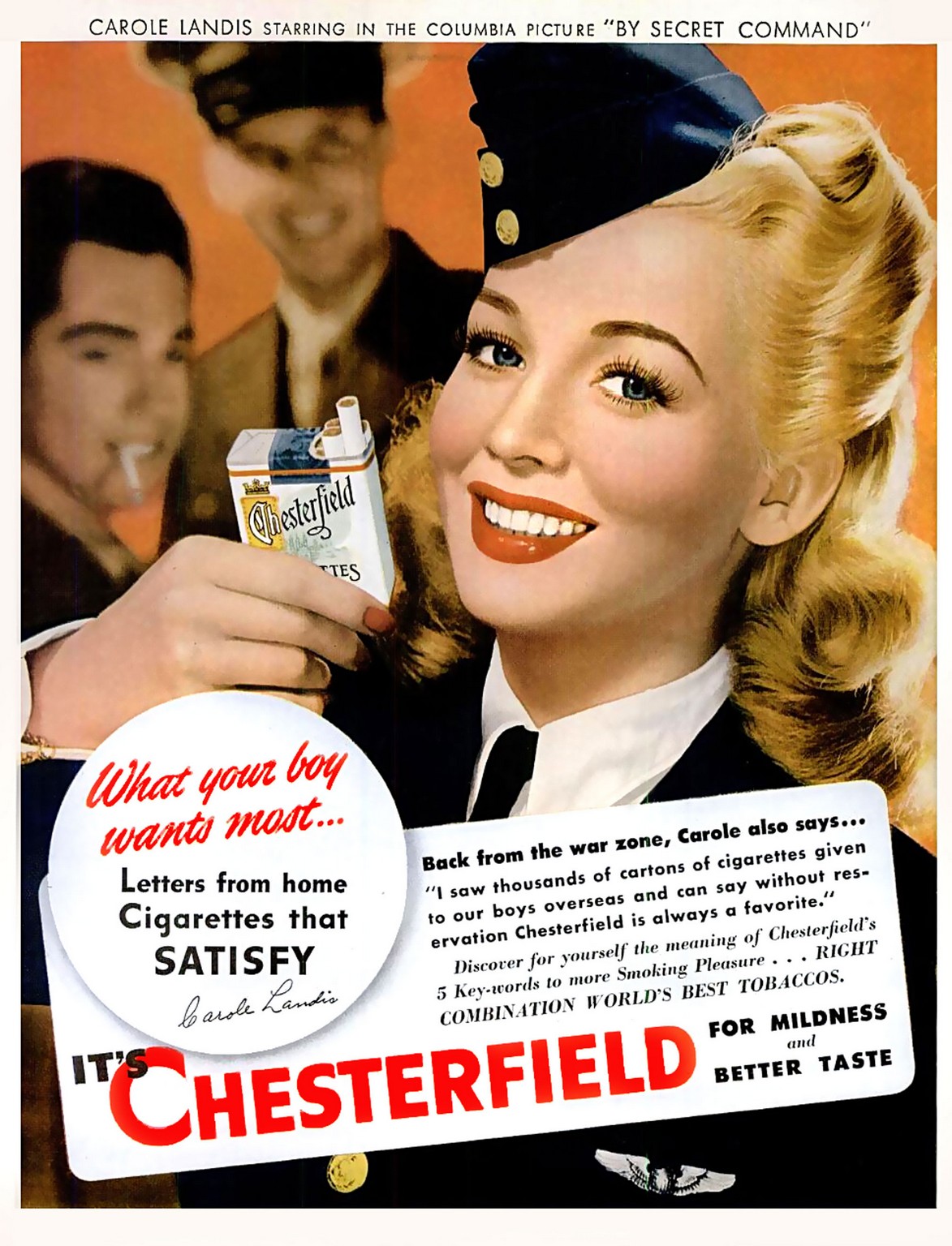 1944 What your boy wants most… Chesterfield and Carole Landis