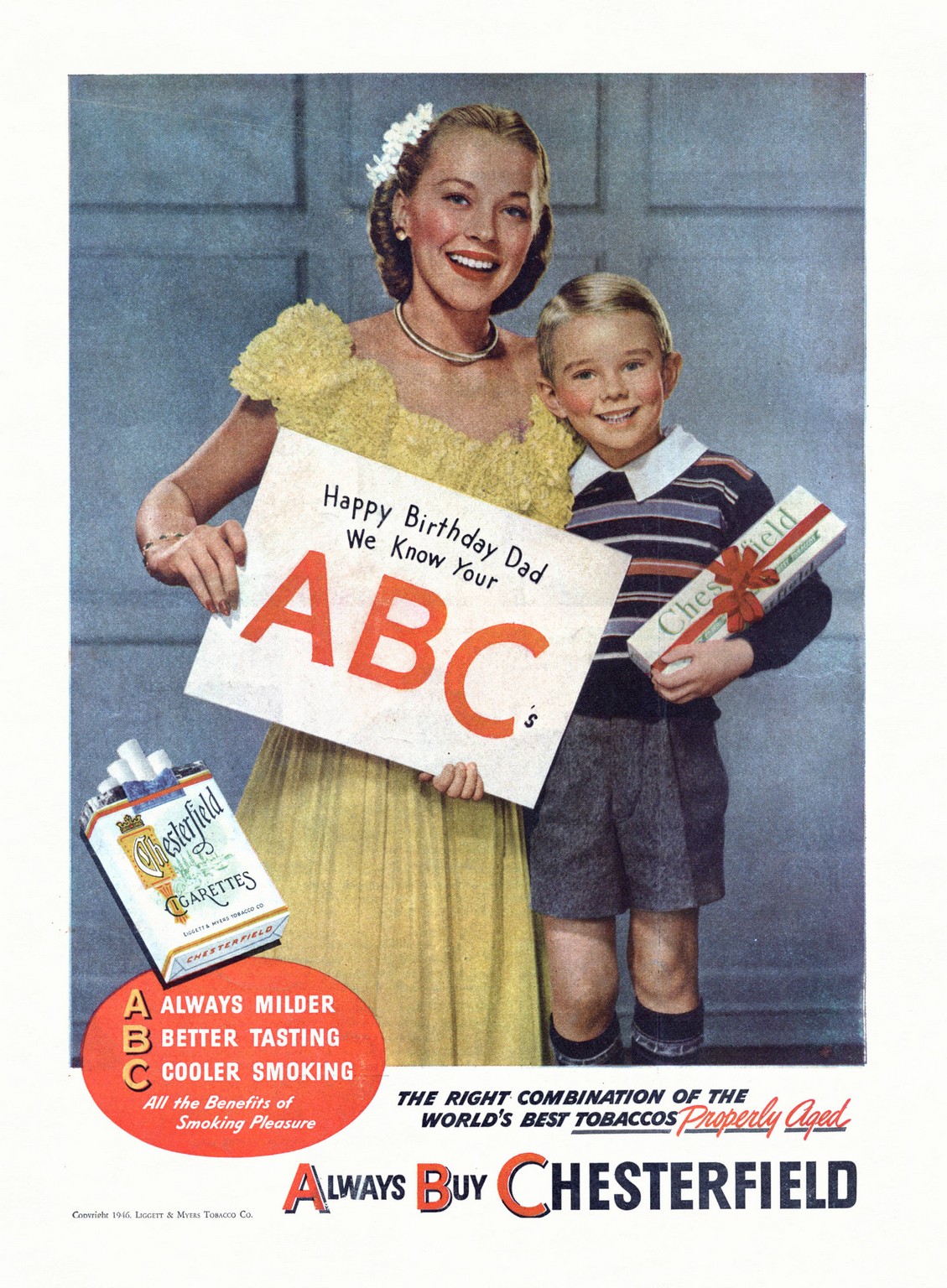 1946 Happy Birthday Dad. We Know Your ABC. Always Buy Chesterfield