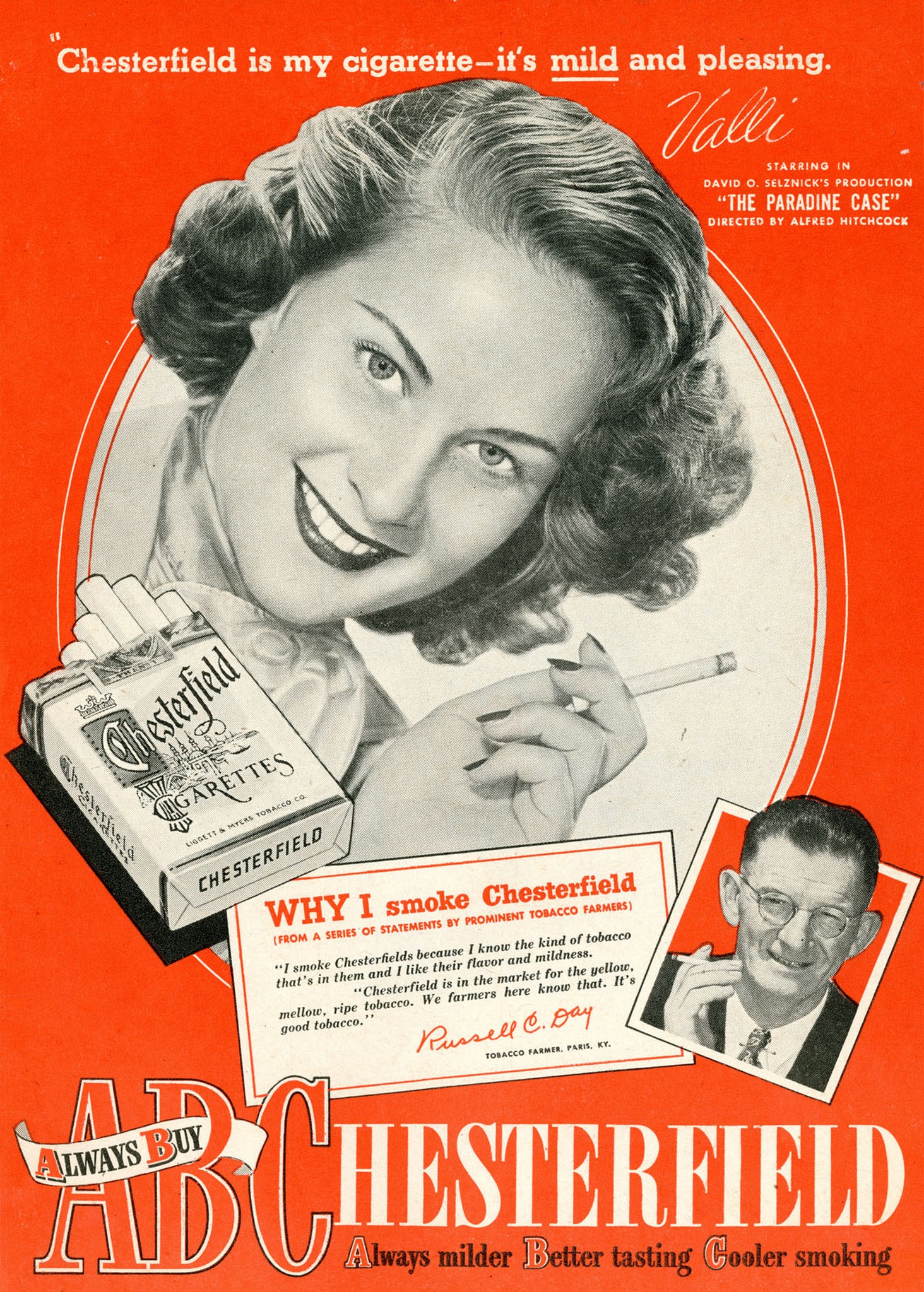 1948 ‘Chesterfield is my cigarette – it’s mild and pleasing.’ Valli