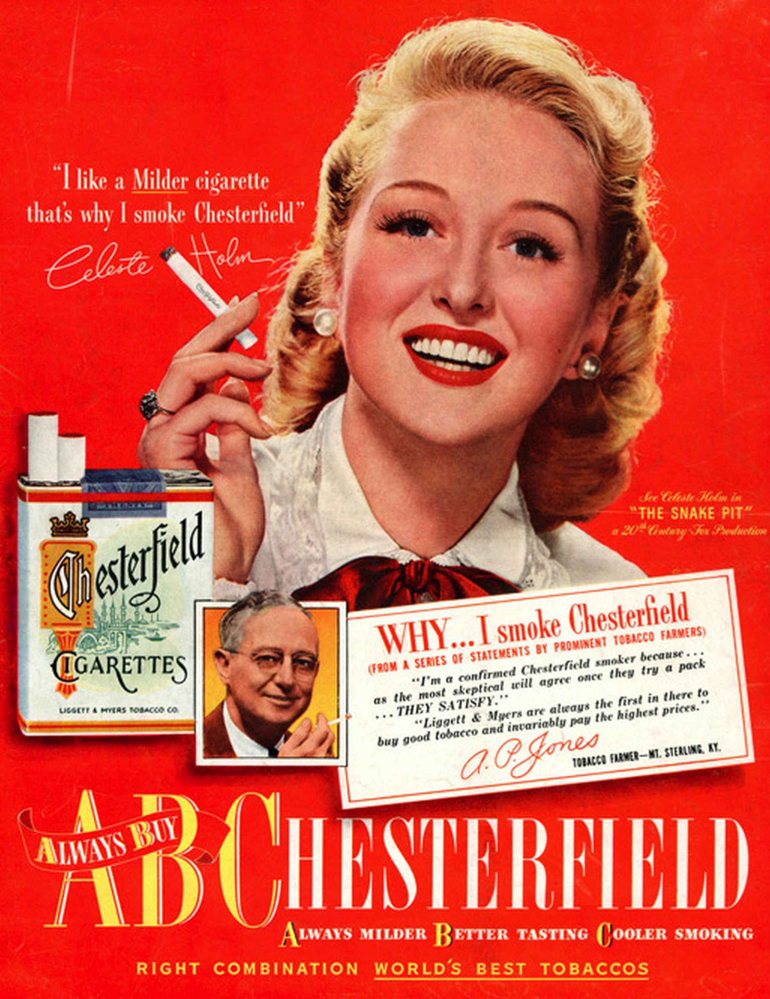 1948 ‘I like a Milder cigarette that’s why I smoke Chesterfield’. Celeste Holm