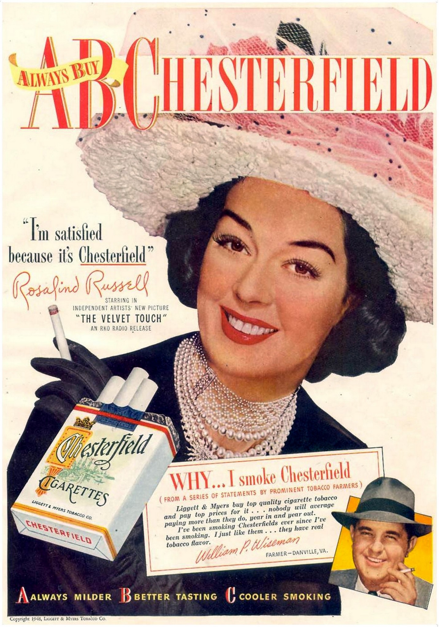 1948 Rosalind Russell starring in independent artists new picture ‘The Velvet Touch’, Chesterfield