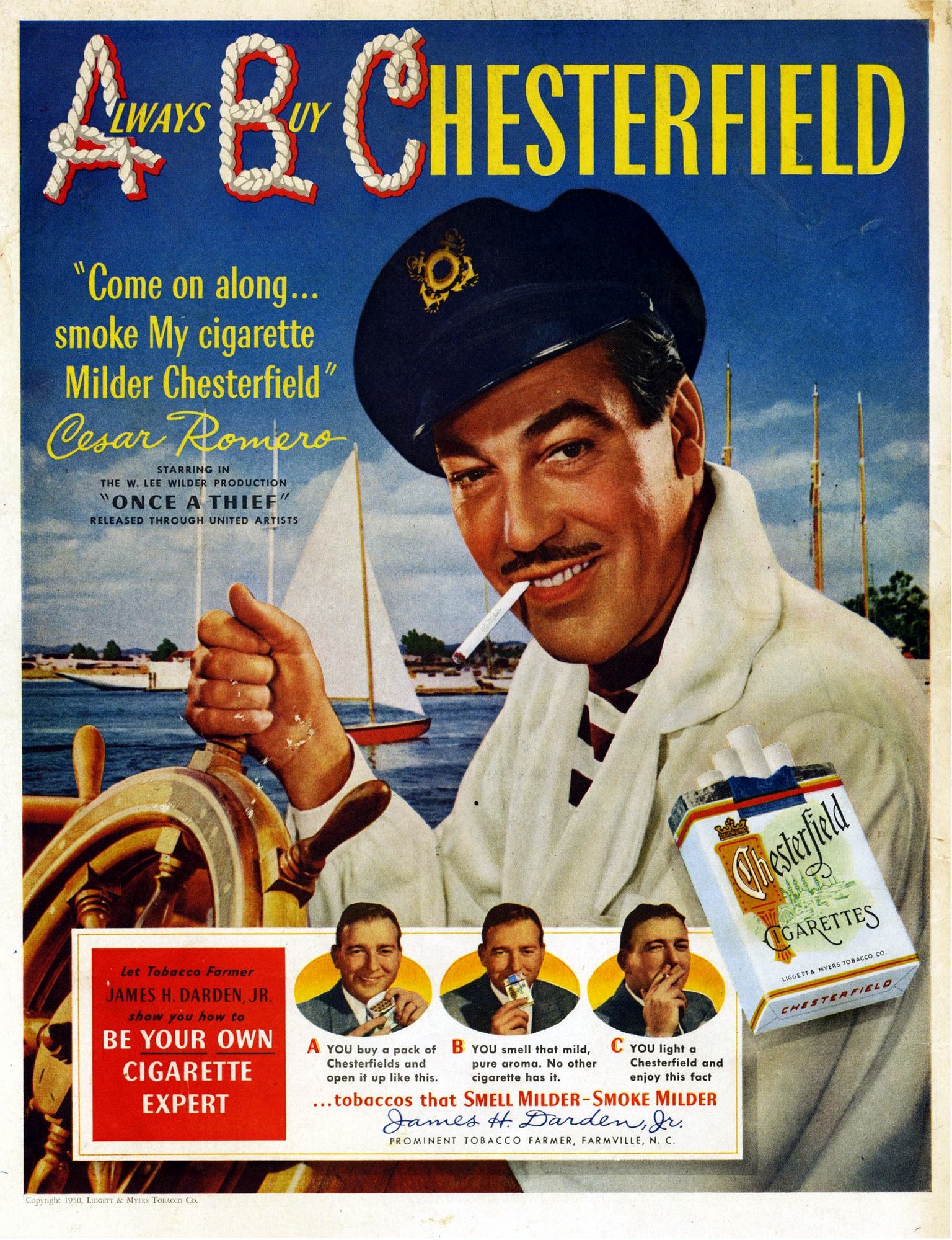 1950 ‘Come on along… smoke My cigarette Milder Chesterfield’s’ Cesar Romero