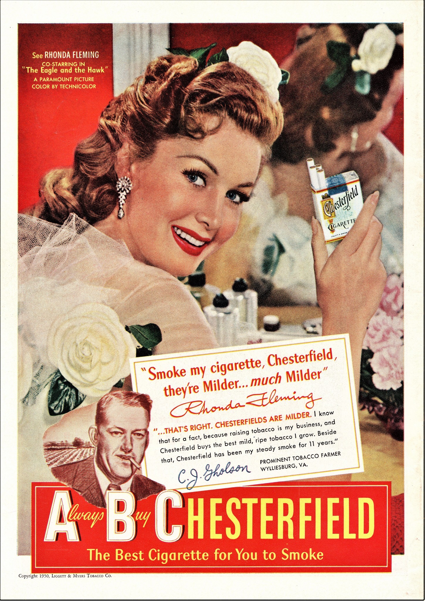 1950 Smoke my cigarette Chesterfield they’re Milder… much Milder’ Rhonda Fleming