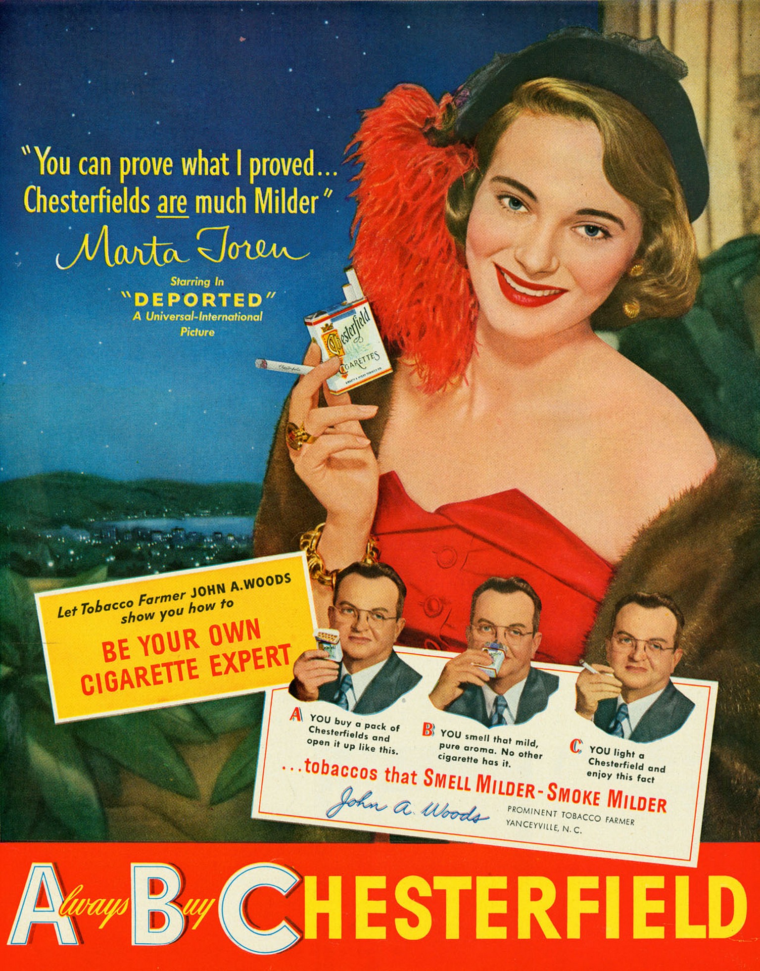 1950 ‘You can prove what I proved… Chesterfields are much Milder’ Marta Loren