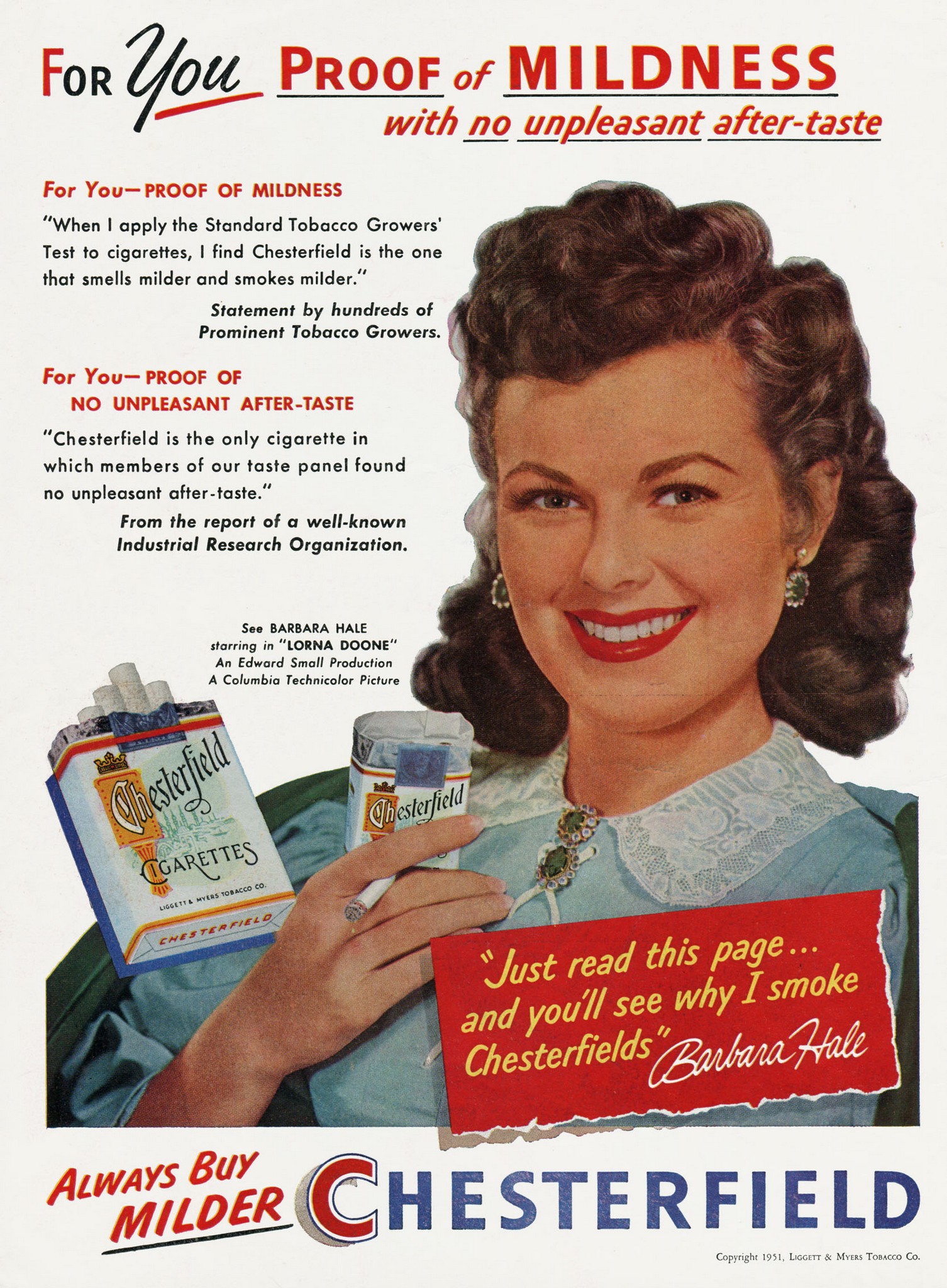 1951 For You Proof of Mildness with no unpleasant after-taste. Chesterfield with Barbara Hale