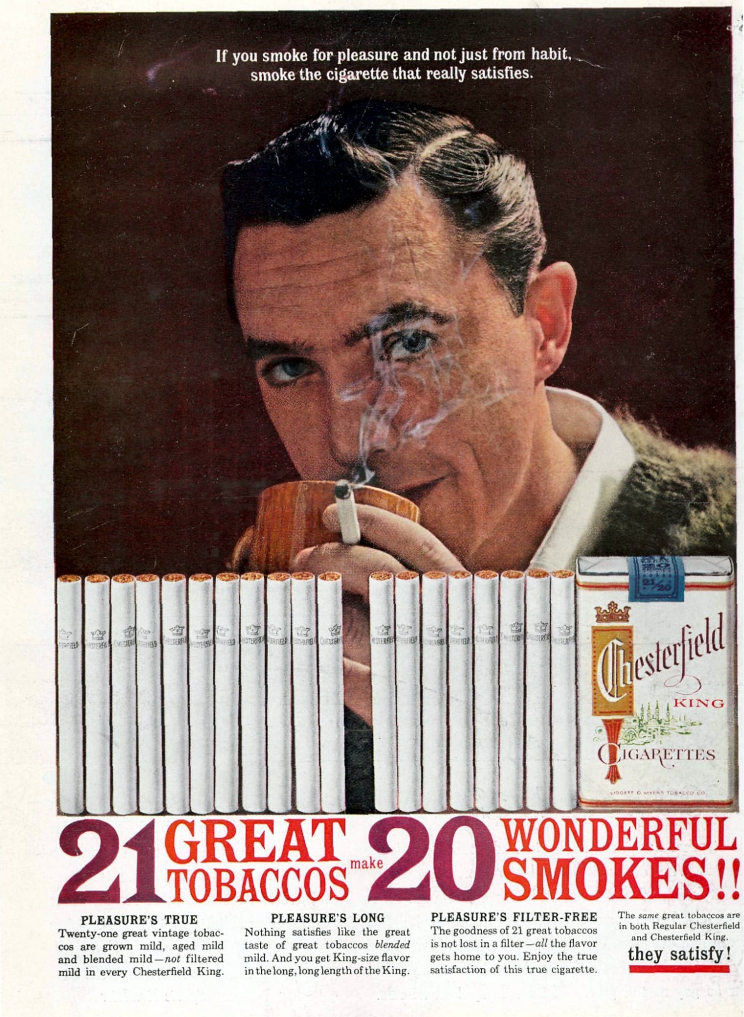 1962 If you smoke for pleasure and not just from habit, smoke the cigarette that really satisfies. Chesterfield