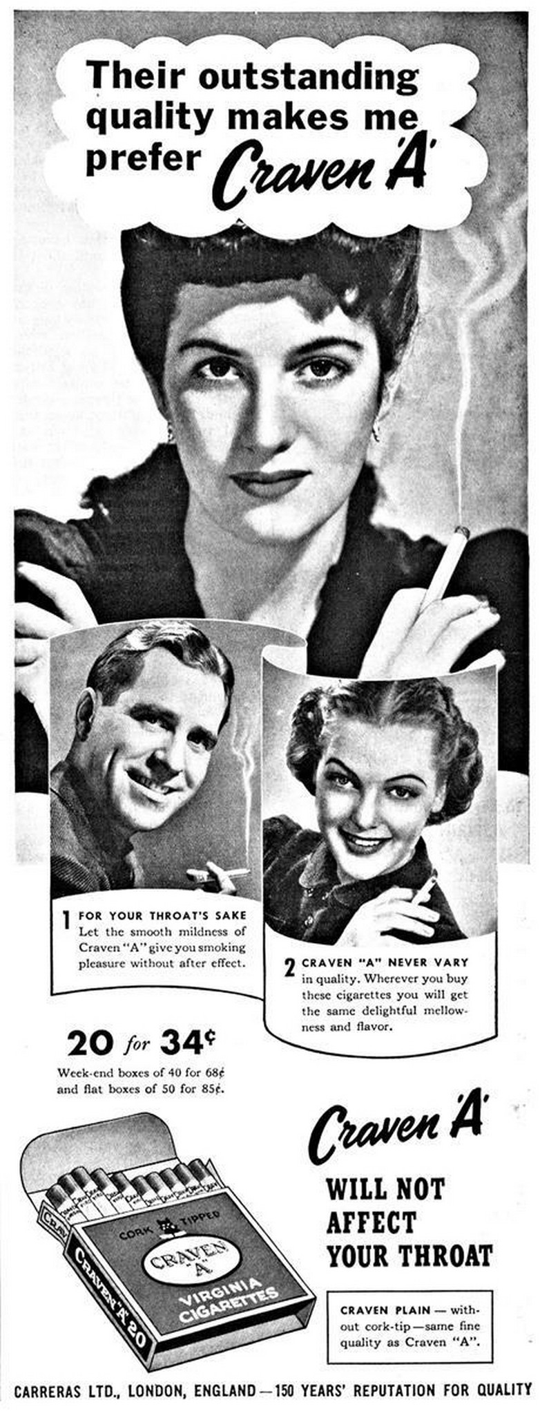 1943 Their outstanding quality makes me prefer Craven 'A'