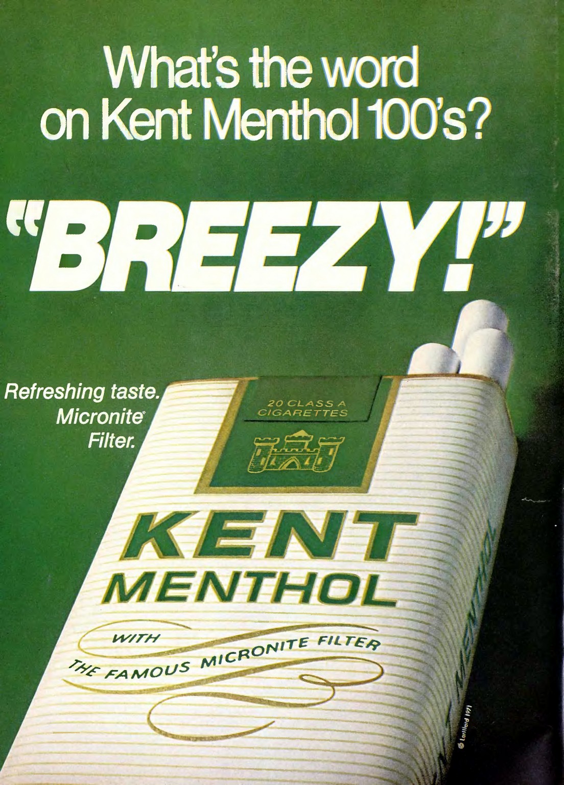 1971 What’s the word on Kent Menthol 100’s. ‘Breezy!’
