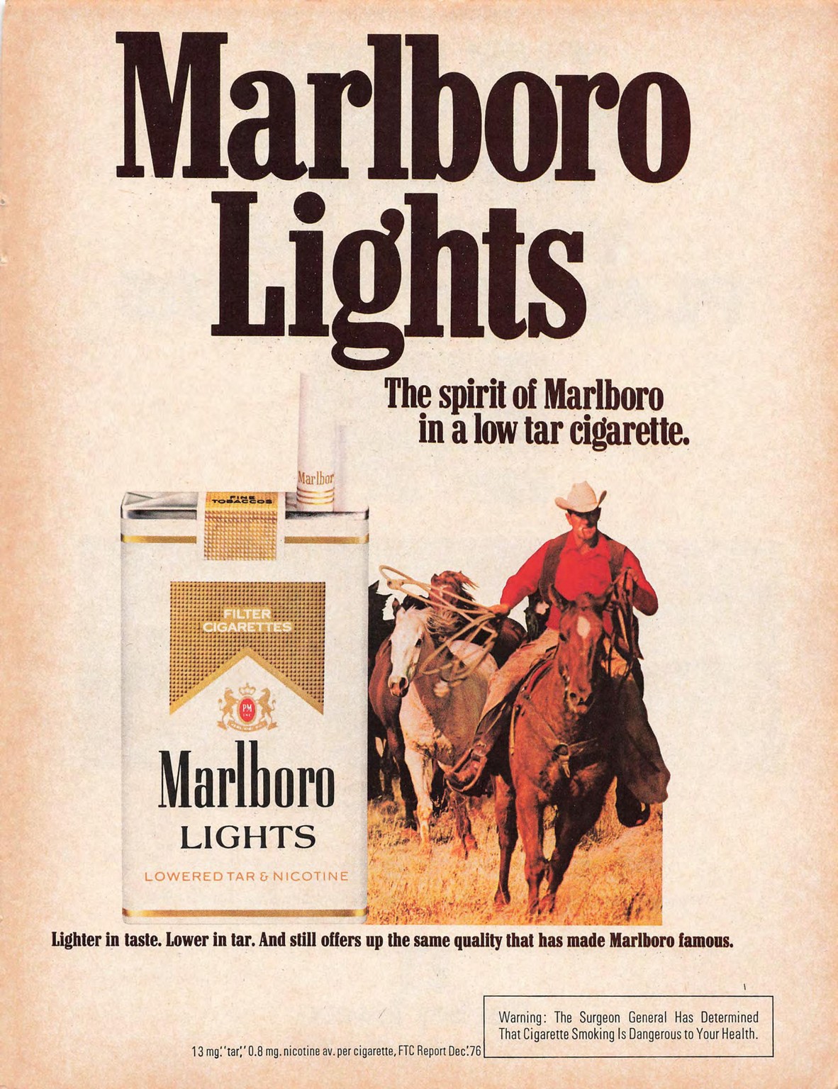1977 Marlboro Lights. The spirit of Marlboro in a low tar cigarette