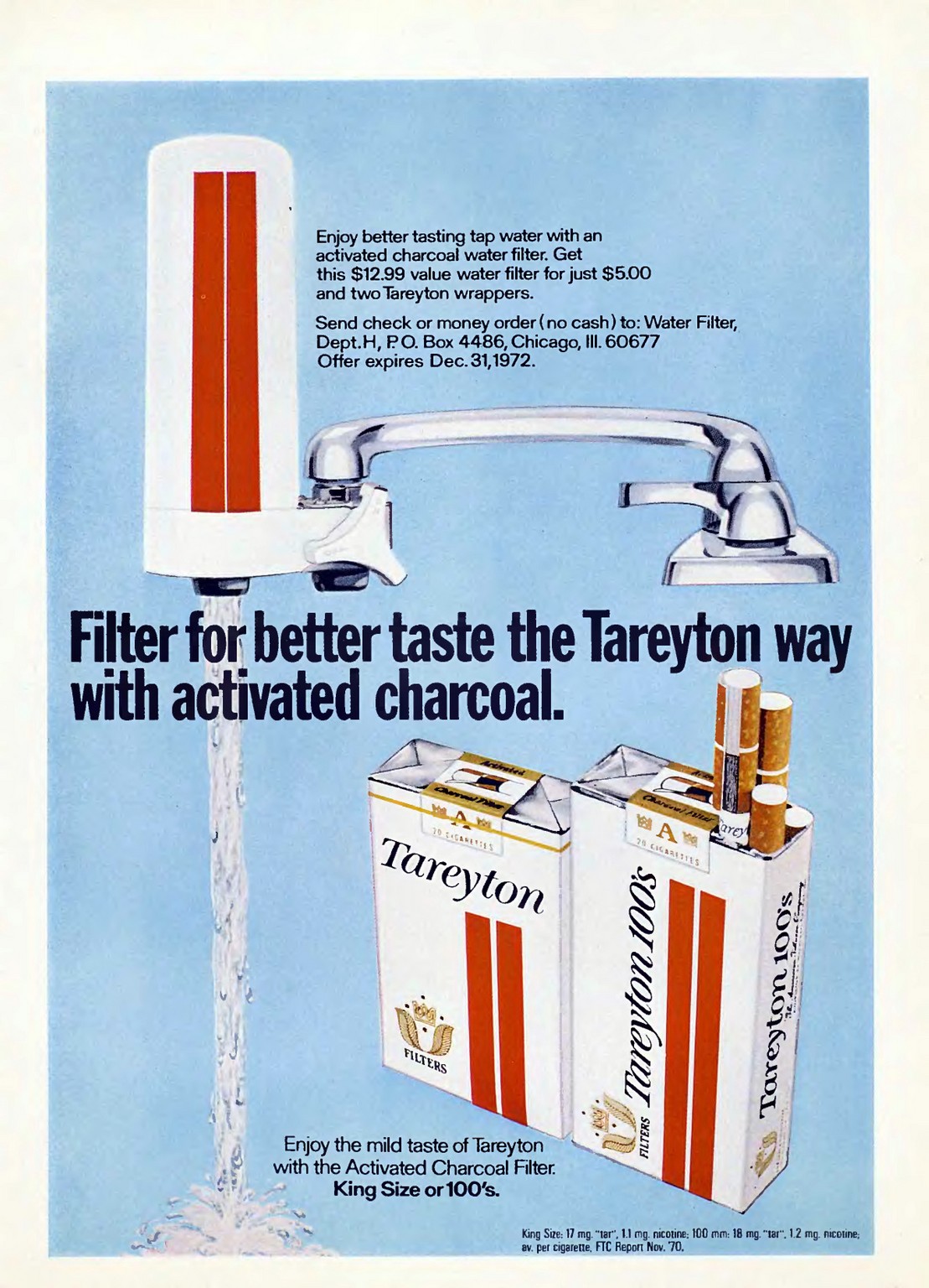 1971 Filter for better taste the Tareyton way with activated charcoal