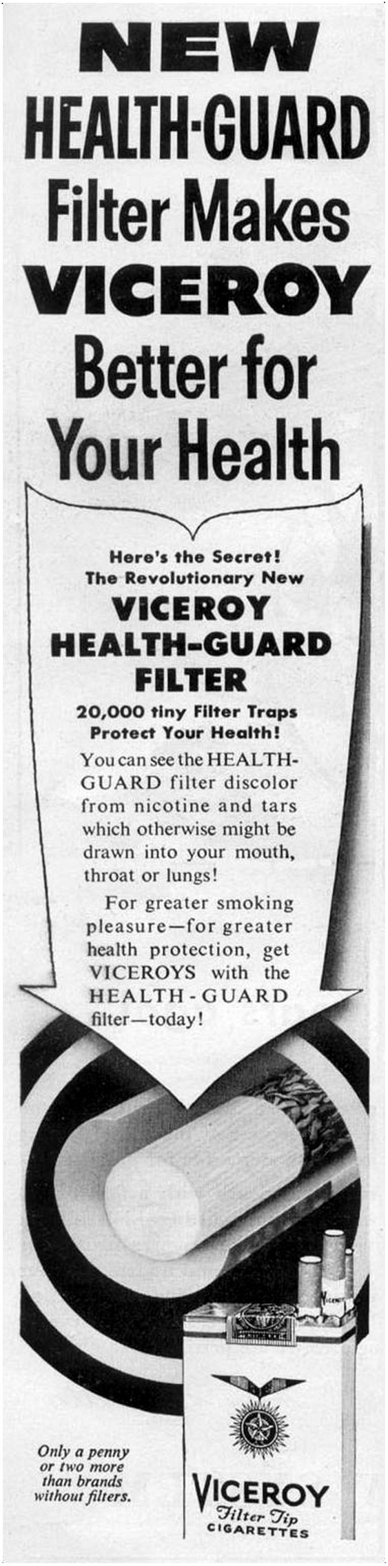 1953 New Health-Guard Filter Makes Viceroy Better for Your Health