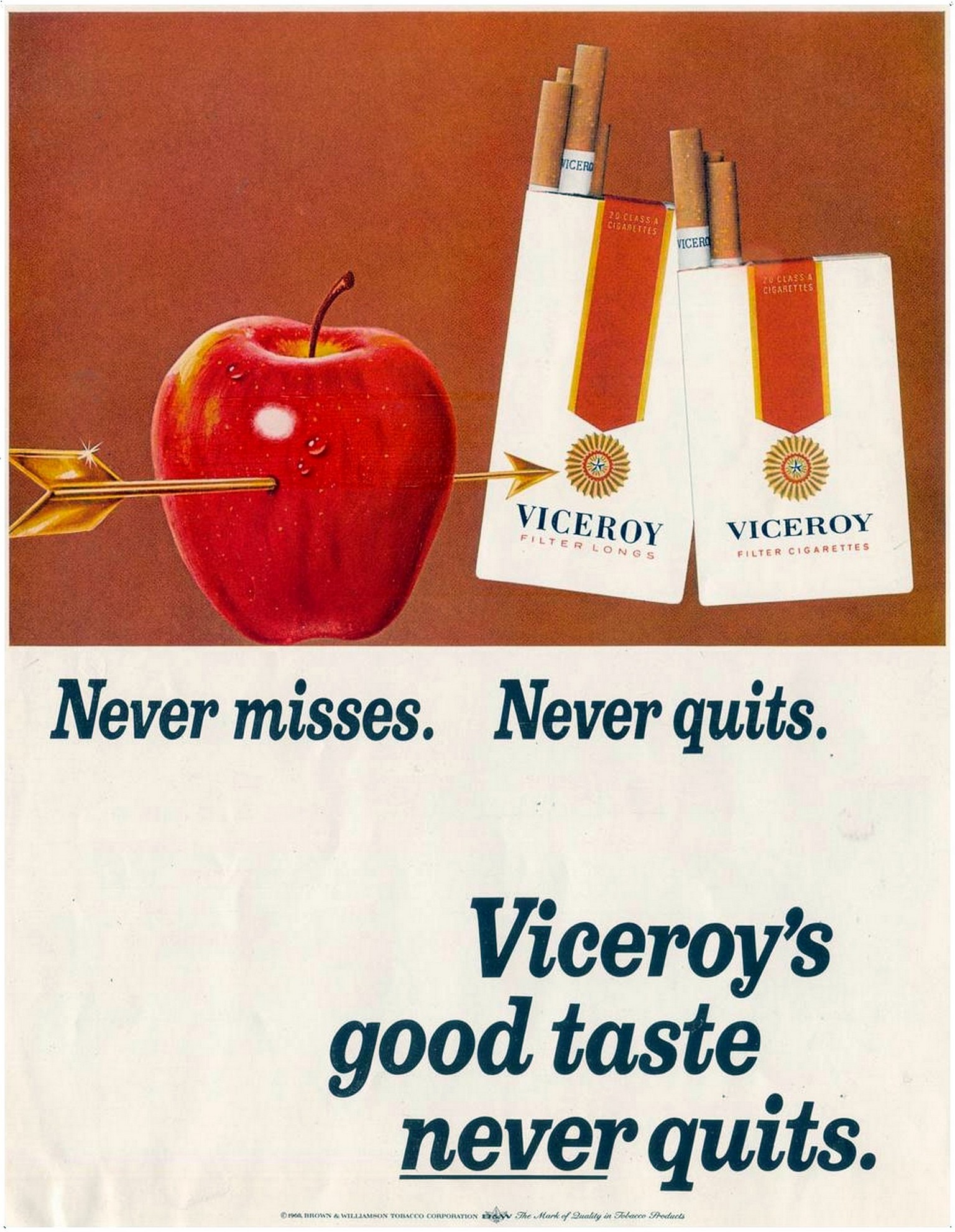 1968 Never misses. Never quits. Viceroy's good taste never quits