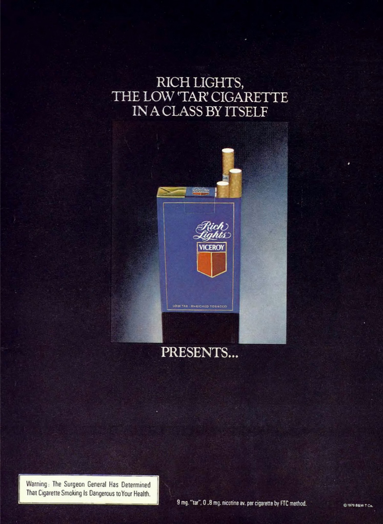 1979 Rich Lights, The Low ‘Tar’ Cigarette In A Class By Itself. Viceroy. Presents ….