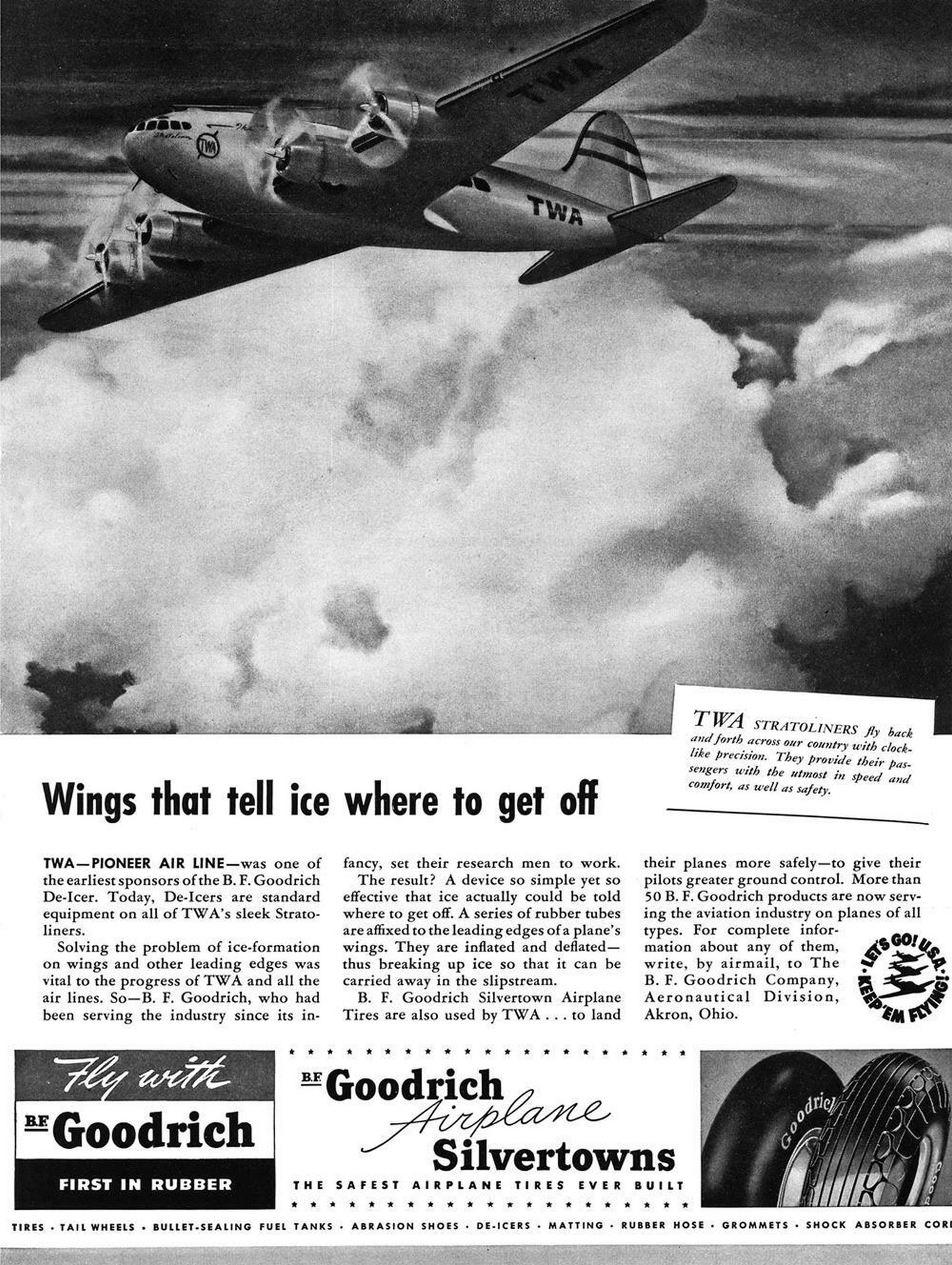 1941 Wings that tell ice where to get off. Fly with B.F. Goodrich