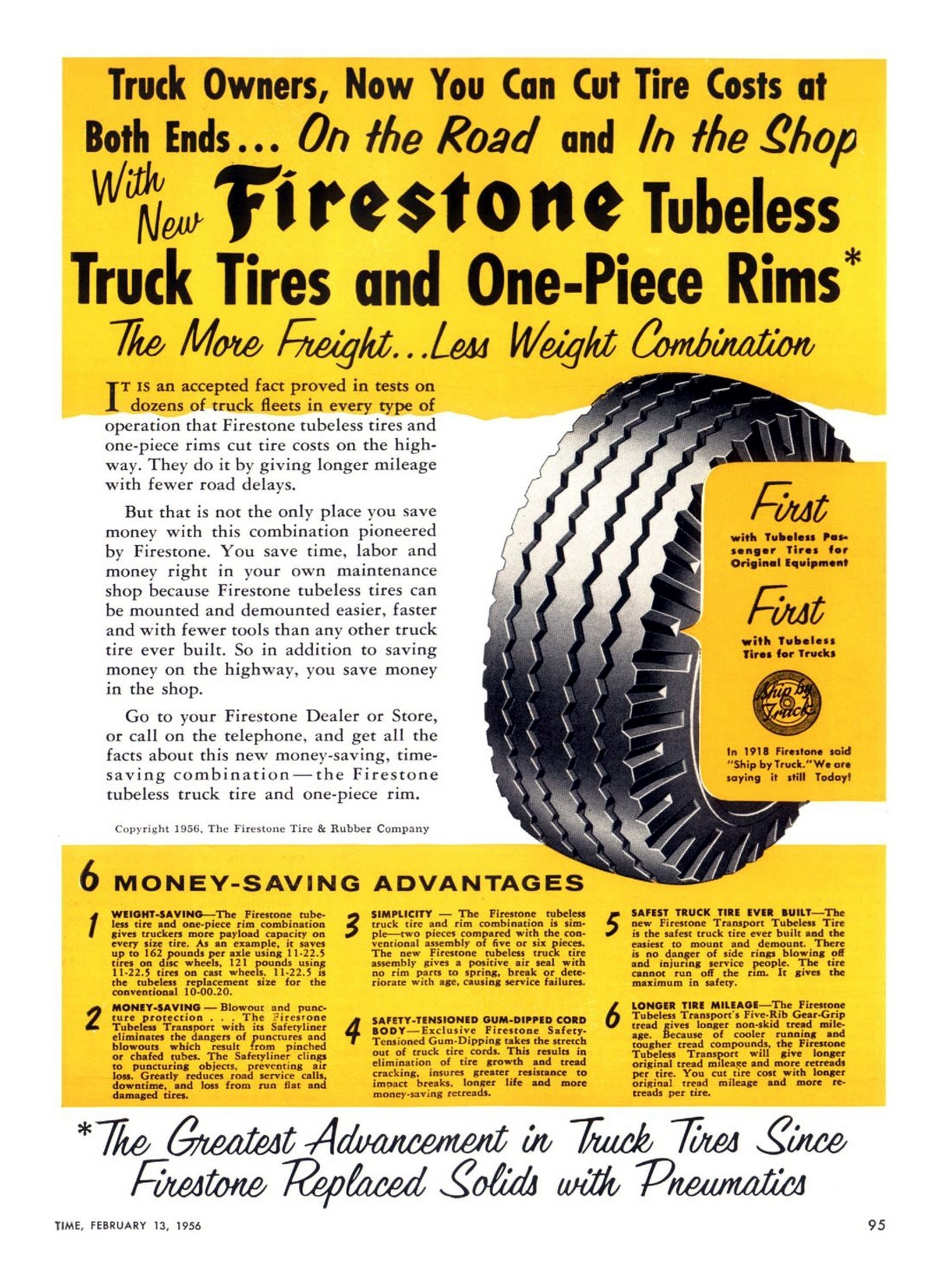 1956 Firestone Tubeless Truck Tires and One-Piece Rims