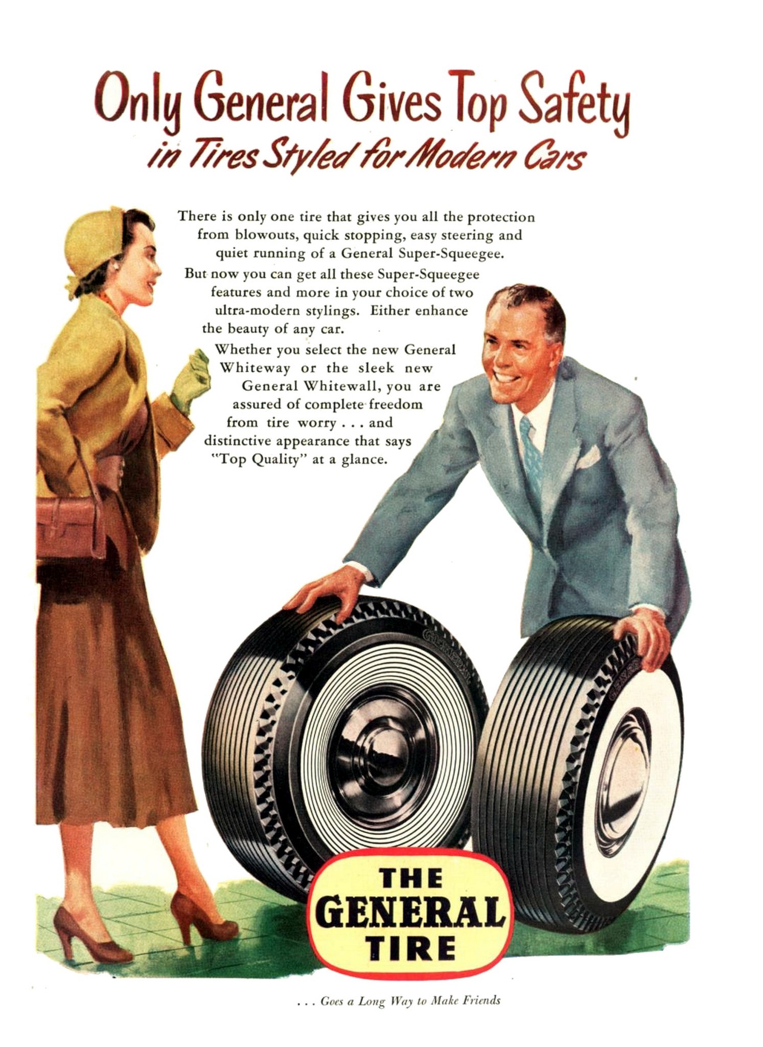 1952 Only General Gives Top Safety in Tires Styled for Modern Cars. The General Tire