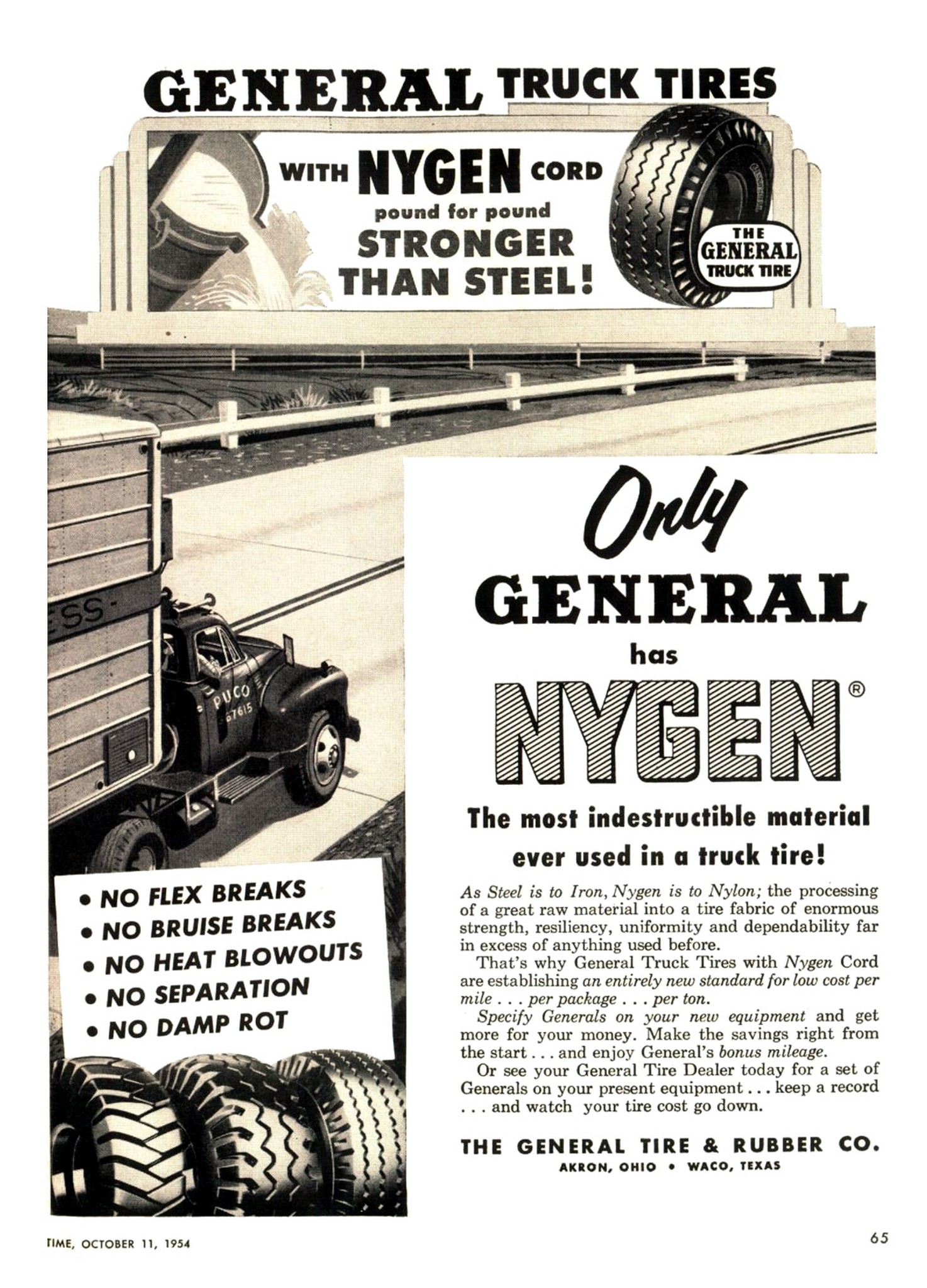1954 General Truck Tires With Nygen Cord pound for pound Stronger Than Steel!