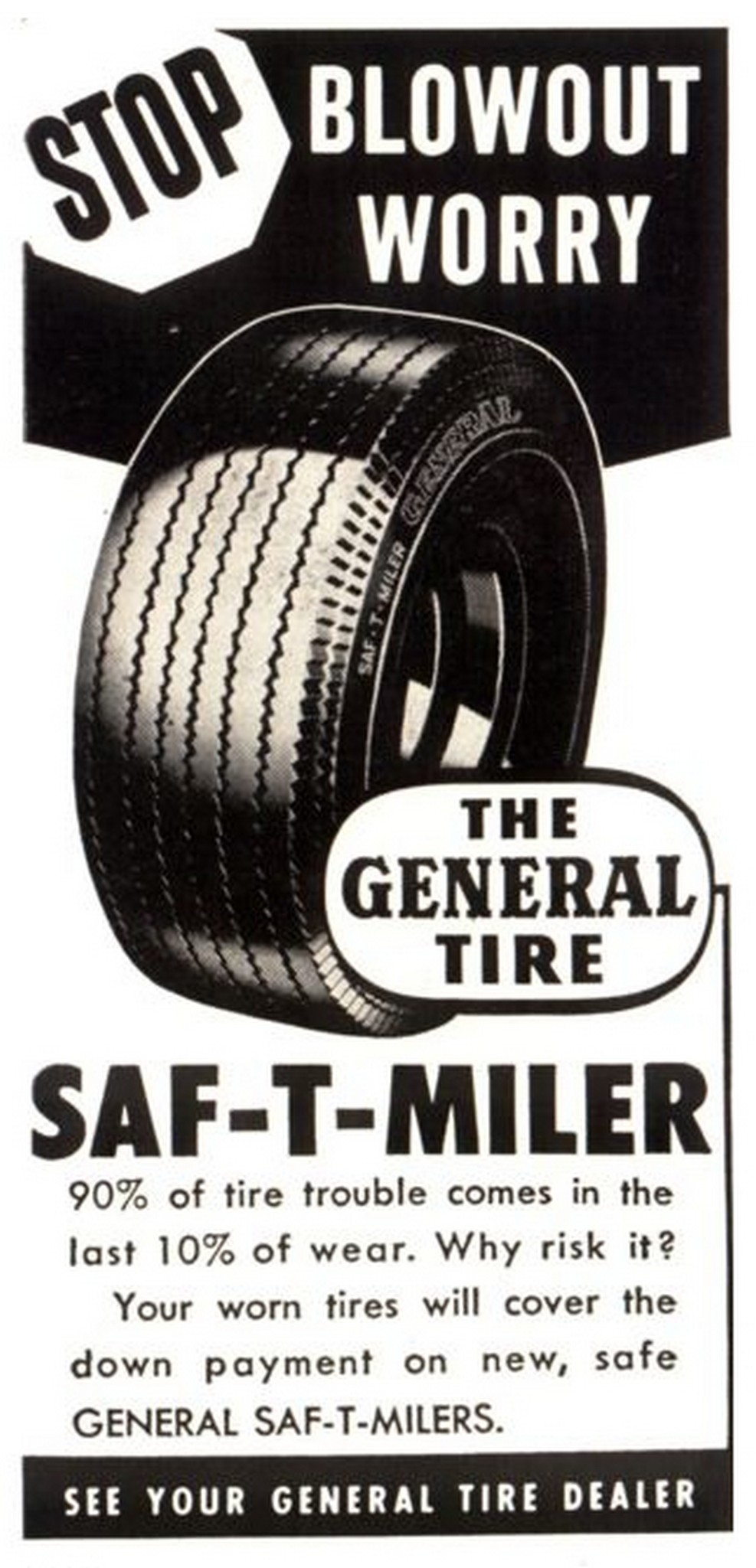 1954 Stop Blowout Worry. The General Tire. Saft-T-Miler