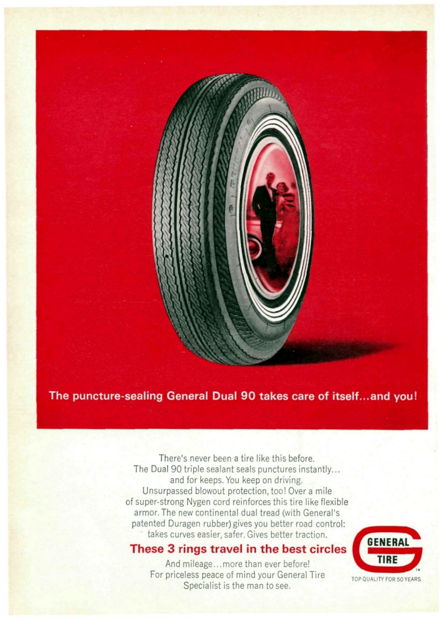 1965 The punctrure-sealing General Dual 90 takes care of itself… and you. General Tire