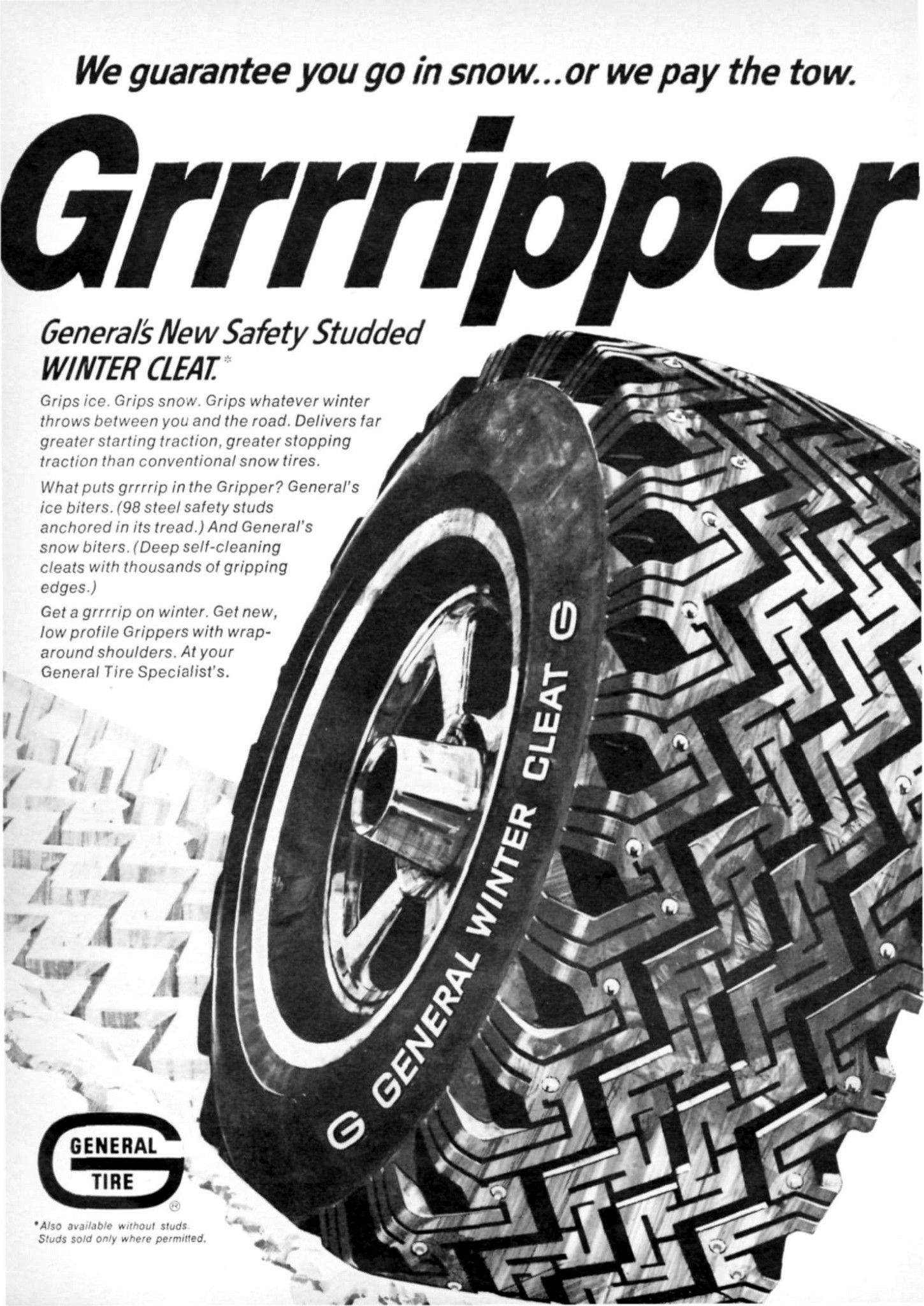 1967 We guarantee you go in snow... or we pay the tow. Grrrripper. General Tire