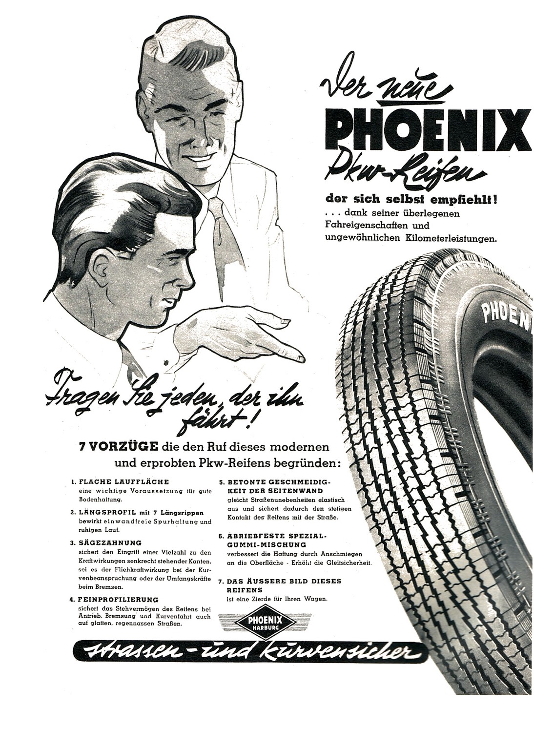 1952 Der neue Phoenix Pkw-Reifen ser sich selbst empfiehlt!