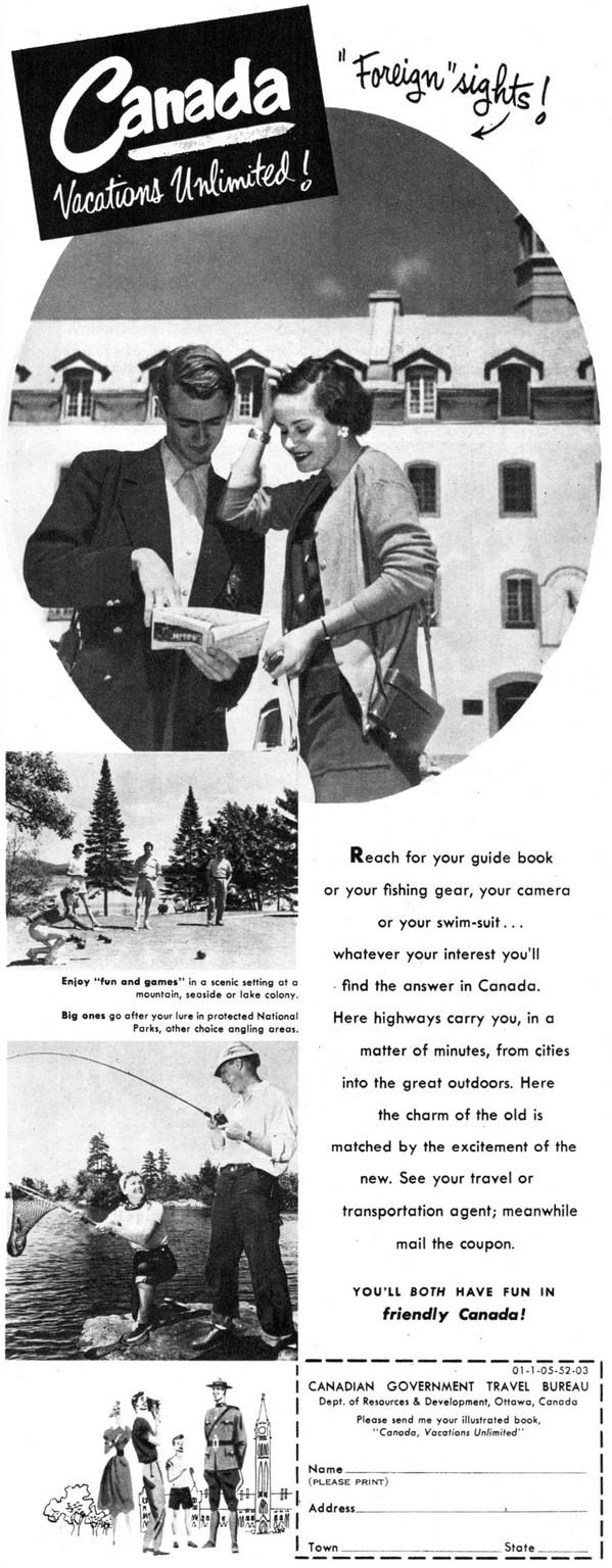 1952 Canada. Vacations Unlimited! ‘Foreign’ sights!
