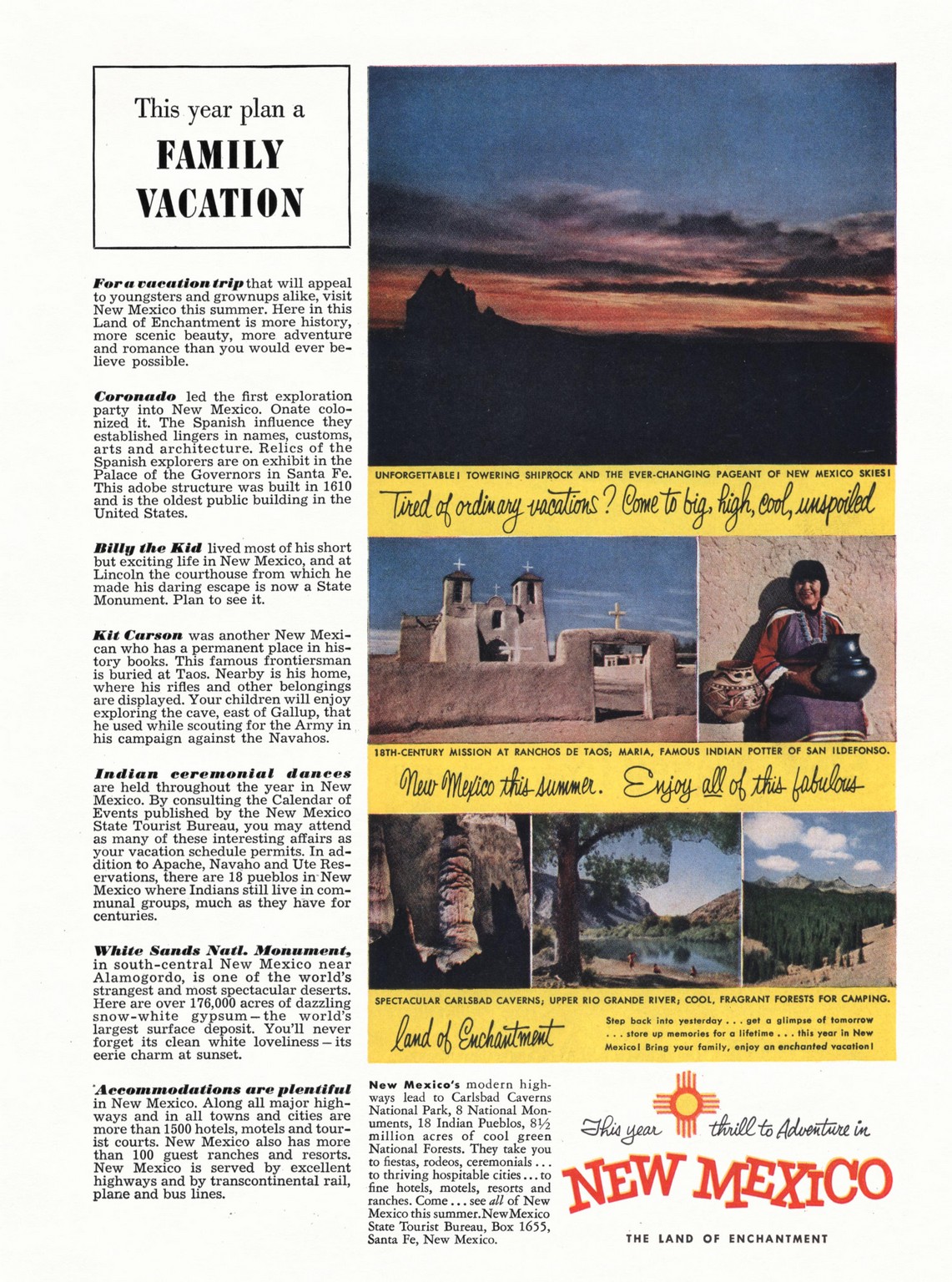 1953 This year plan a Family Vacation. This year thrill to Adventure in New Mexico